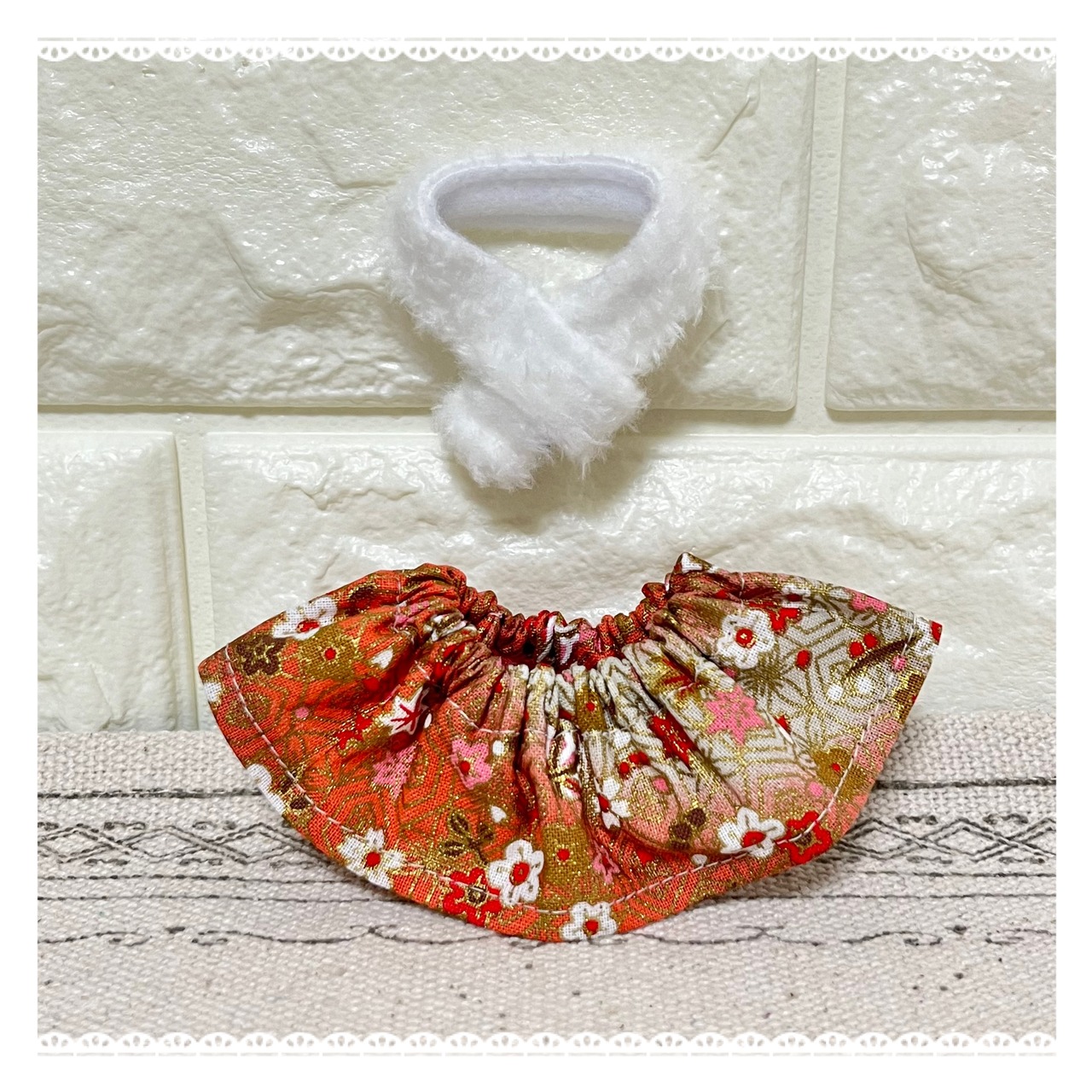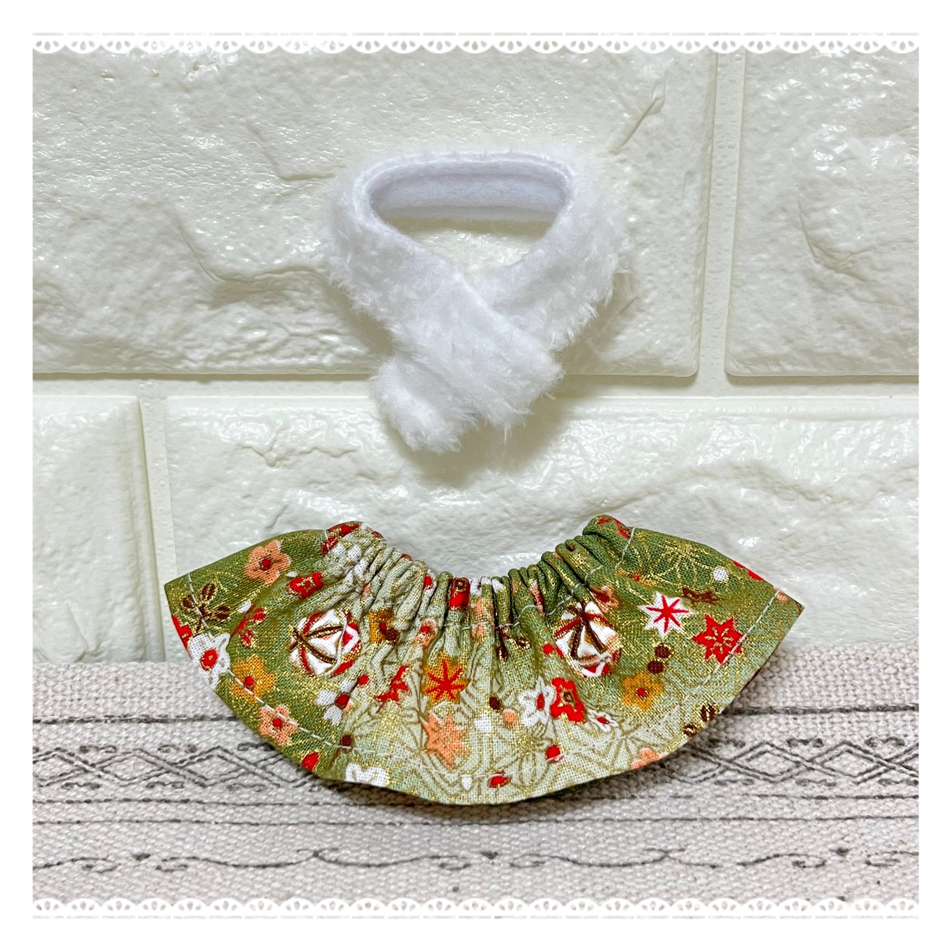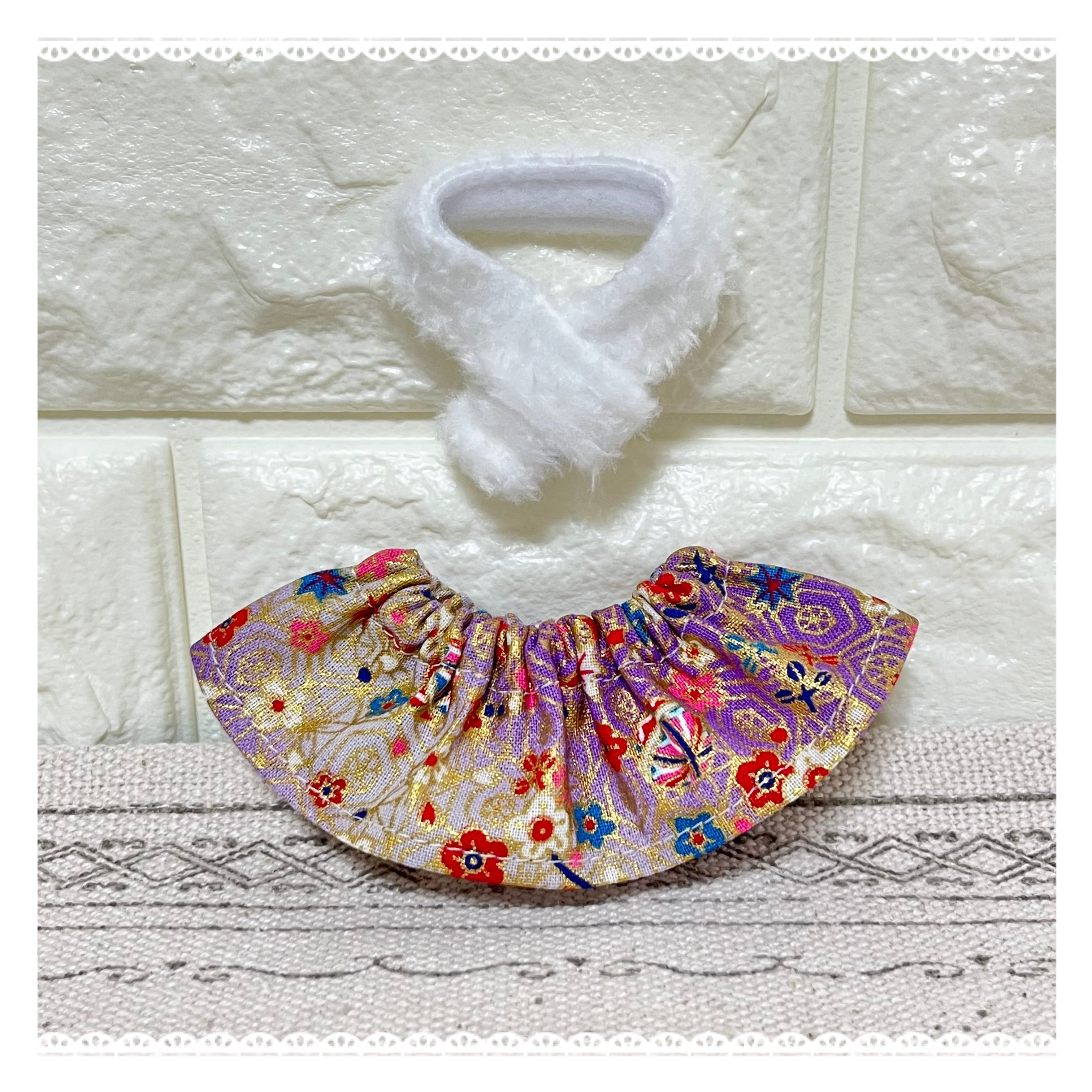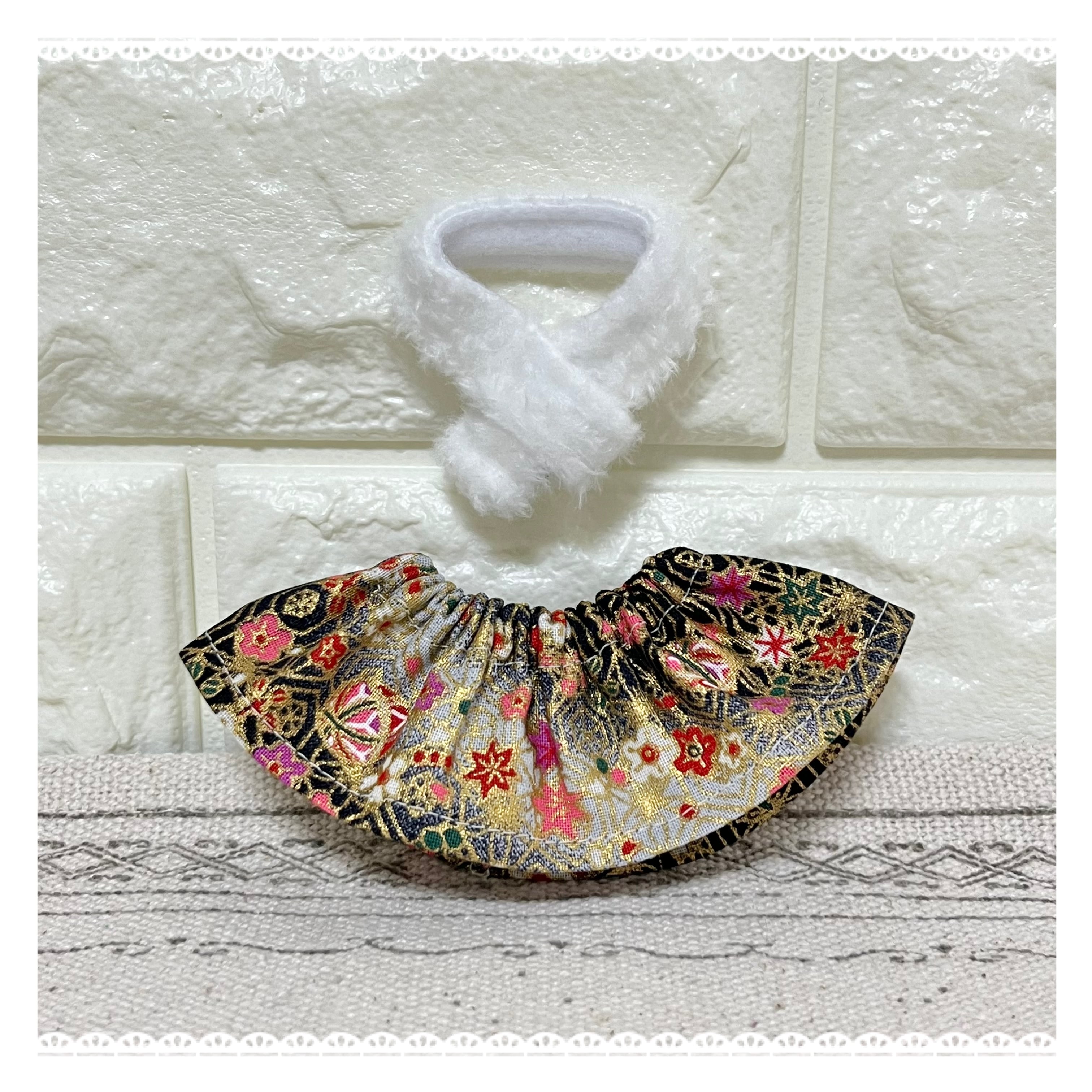 和柄のスカートとふわふわマフラーの